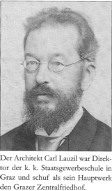 1885 wurde der aus Wien stammende Architekt Carl Lauzil, Direktor der k.k. Staatsgewerbeschule in Graz, mit den Planungen betraut. Lauzil wählte im Sinn der zu dieser Zeit vorherrschenden Stilpluralität des Historismus die italienische Gotik als Vorbild für die Gebäude des Zentralfriedhofs, die, ohne dürftig zu erscheinen, eine gewisse Einfachheit zuließ und dennoch zum ernsten Charakter des Friedhofs beitrug.